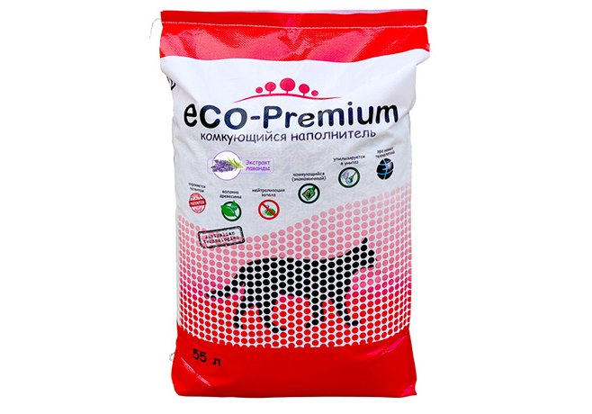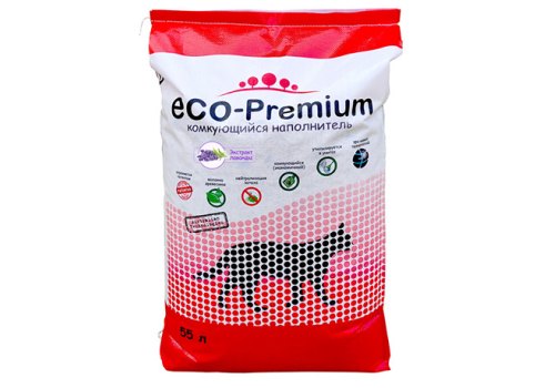 Eco Premium Лаванда Наполнитель Эко Премиум для кошачьего туалета Древесный Комкующийся с ароматом Лаванды 55 л (20,2 кг)