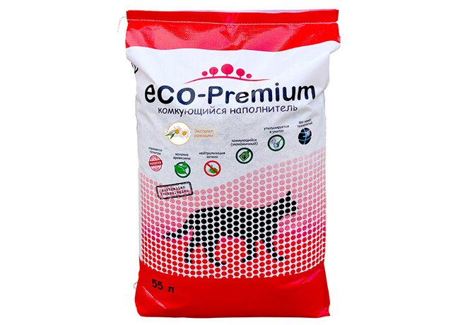 Eco Premium Ромашка Наполнитель Эко Премиум для кошачьего туалета Древесный Комкующийся с ароматом Ромашки 55 л (20,2 кг)