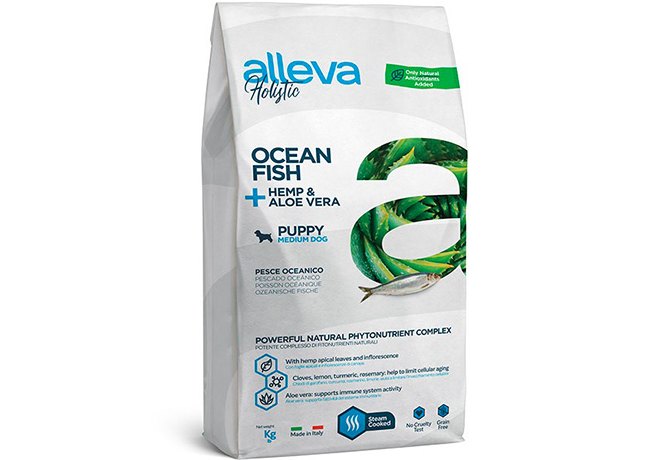 Alleva Holistic Puppy Medium Ocean Fish & Hemp Aloe vera Сухой корм Аллева для Щенков Средних пород Океаническая рыба Алоэ вера Конопля 800 г