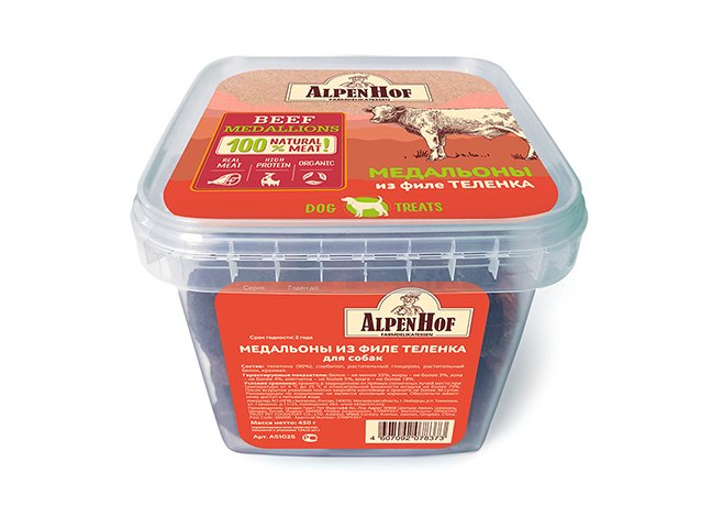 AlpenHof Beef Medallions Лакомство Альпенхоф для собак Медальоны из филе Теленка 450 г
