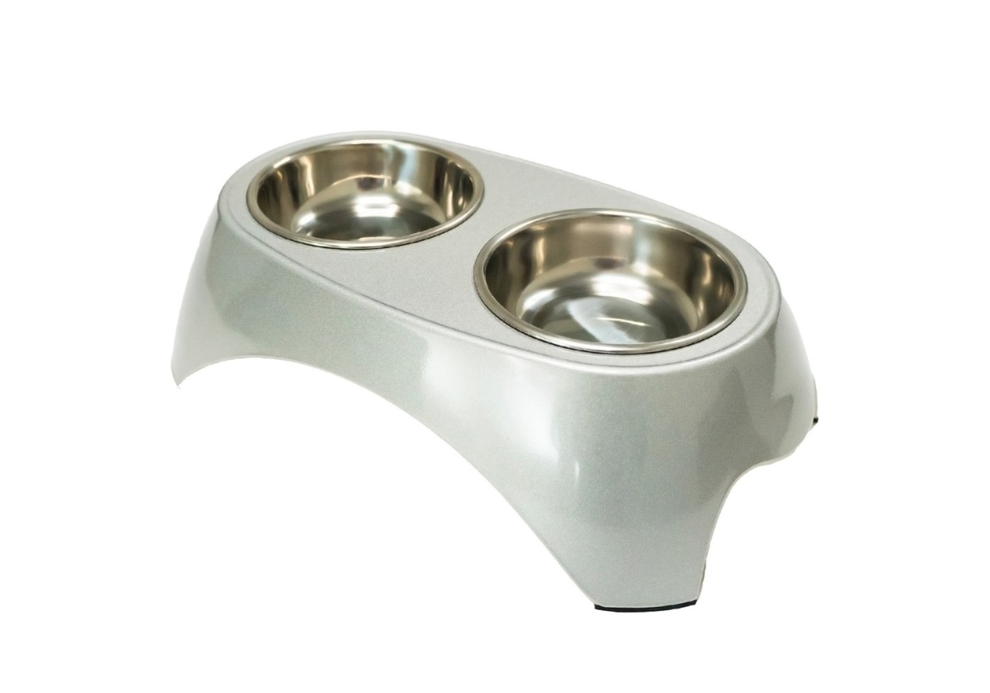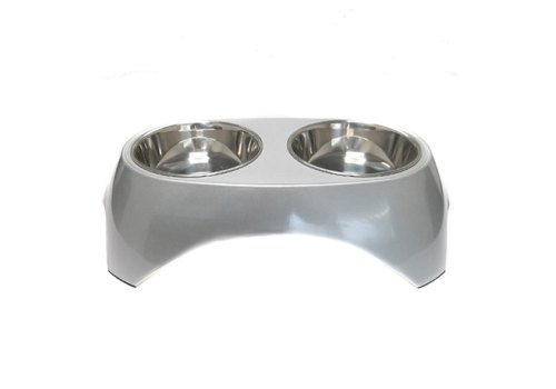 SuperDesign Миска Супер Дизайн на меламиновой подставке Двойная Металлик Белая 2 х 350 мл