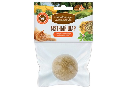 Деревенские лакомства Мятный шар для кошек Календула Корень солодки 22 г