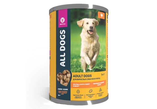 All Dogs Консервы Ол Догс для собак Тефтельки с Индейкой в соусе (цена за упаковку) 415г х 12шт
