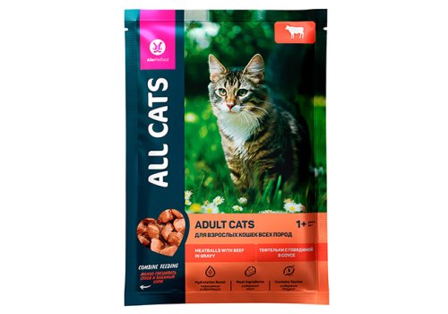 All Cats Паучи Ол Кэтс для кошек Тефтельки с Говядиной в соусе (цена за упаковку) 85г х 28шт