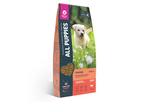 All Puppies Сухой корм Ол Паппис для Щенков с Говядиной и овощами 13 кг