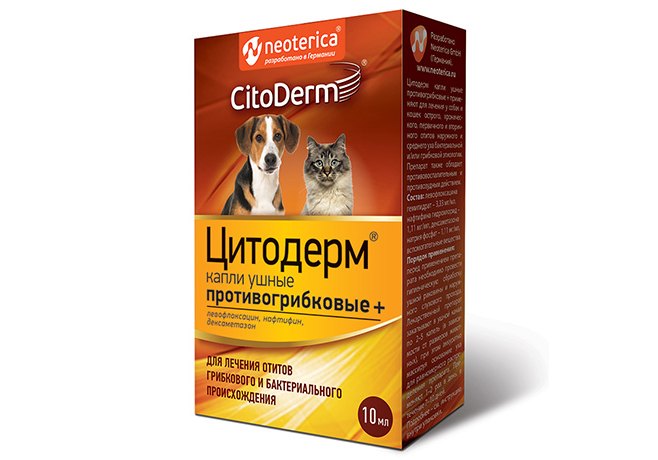CitoDerm Капли Цитодерм для кошек и собак Ушные Противогрибковые+ 10 мл