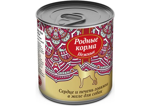 Родные Корма Нежные Консервы для собак Сердце и Печень Говяжьи в желе (цена за упаковку) 240г х 6 шт