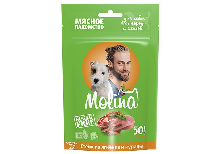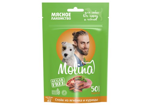 Molina Мясное лакомство Молина для Щенков и собак всех пород Стейк из Ягненка и Курицы 50 г