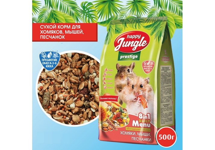 Happy Jungle Prestige 8in1 Daily Menu Корм Хеппи Джангл для Хомяков Мышей Песчанок Обогащенный 500 г