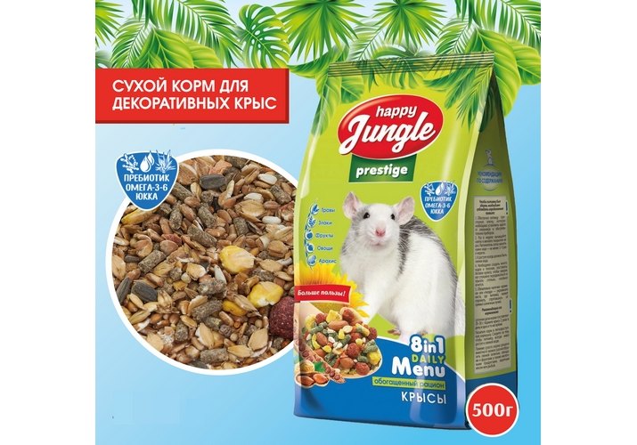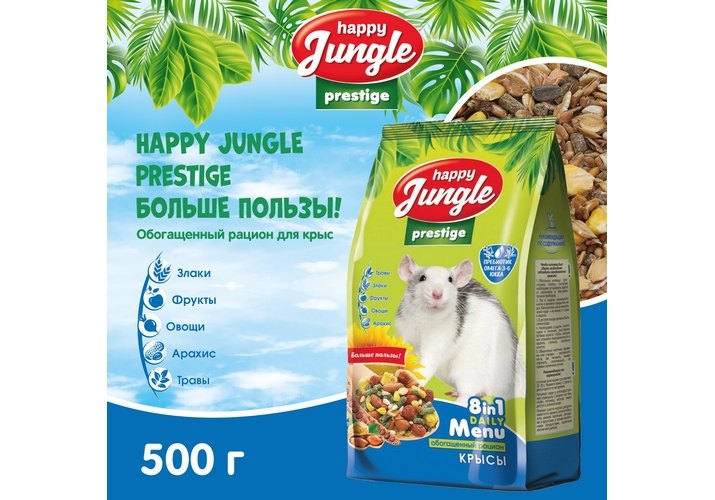 Happy Jungle Prestige 8in1 Daily Menu Корм Хеппи Джангл для Крыс Обогащенный 500 г