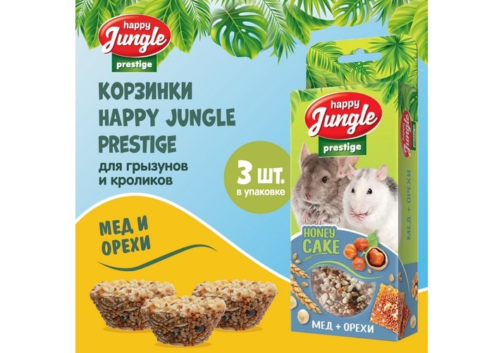Happy Jungle Prestige Honey Cake Лакомство Хеппи Джангл для Грызунов Корзинки Мед + Орехи 27г х 3шт