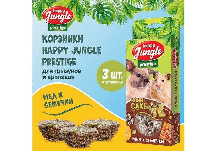Happy Jungle Prestige Honey Cake Лакомство Хеппи Джангл для Грызунов Корзинки Мед + Семечки 27г х 3шт