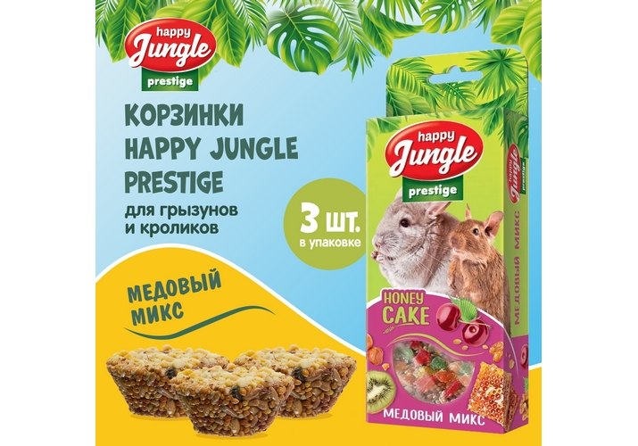 Happy Jungle Prestige Honey Cake Лакомство Хеппи Джангл для Грызунов Корзинки Медовый микс 27г х 3шт