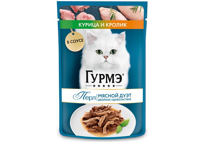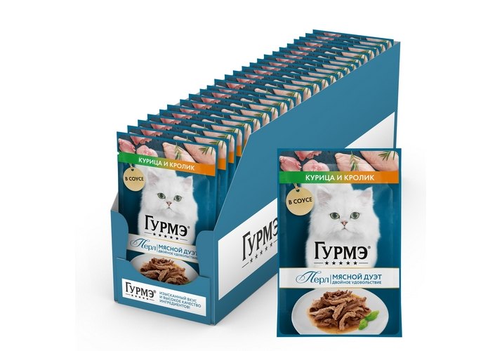 Влажный корм для взрослых кошек ГУРМЭ® создан специально для питомцев, которые ценят качество и разнообразие вкусов и текстур. ГУРМЭ® Перл Мясной Дуэт — это нежные ломтики мини-филе с изысканными комбинациями мясных вкусов курицы и кролика в роскошном соусе. Мы заботимся о том, чтобы корм для вашего пушистого друга был не только питательным, но и ощущался питомцем, как гастрономический праздник. Именно поэтому эксперты в сфере кормов для животных создали гармоничное сочетание сразу двух вкусов, которые превращаются в настоящий мясной дуэт, удовлетворяя самым изысканным предпочтениям кошек.