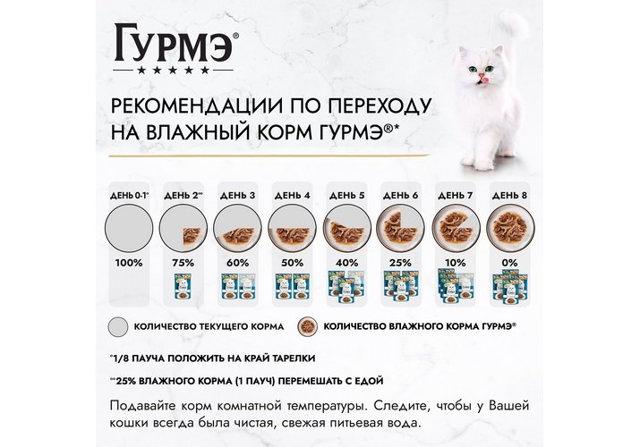 Корм для кошек ГУРМЭ® полнорационный, содержит все необходимые для здоровья микронутриенты.