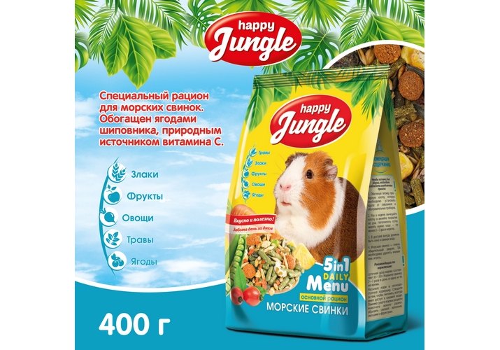 Happy Jungle 5in1 Daily Menu Корм Хеппи Джангл для Морских свинок 400 г