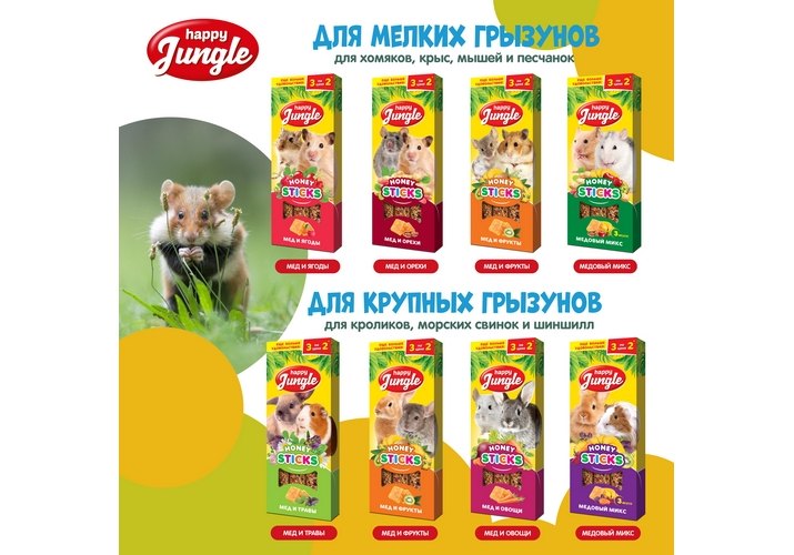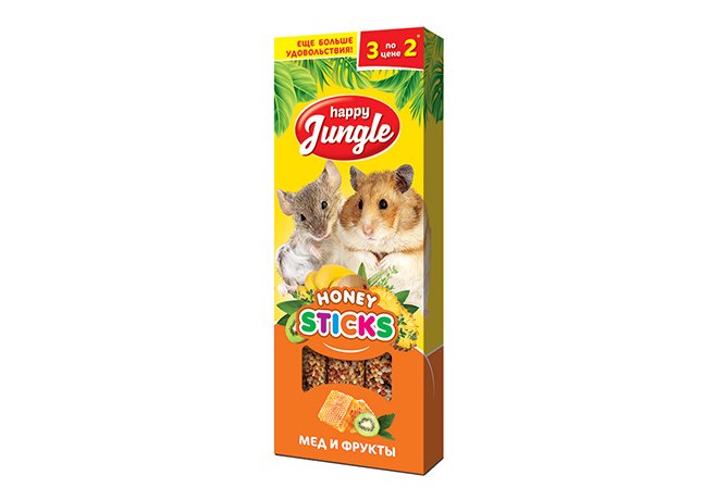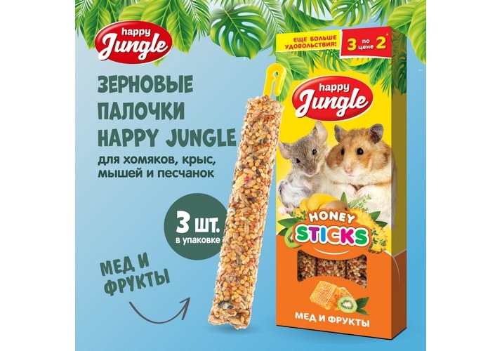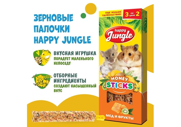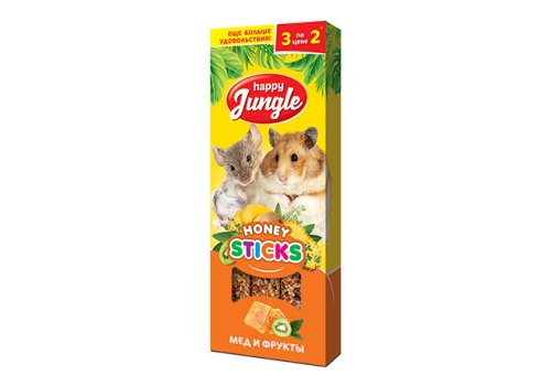 Happy Jungle Honey Sticks Лакомство Хеппи Джангл для Мелких грызунов Палочки Мед + Фрукты 1 х 3шт