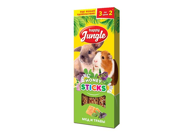 Happy Jungle Honey Sticks Лакомство Хеппи Джангл для Крупных грызунов Палочки Мед + Травы 1 х 3шт