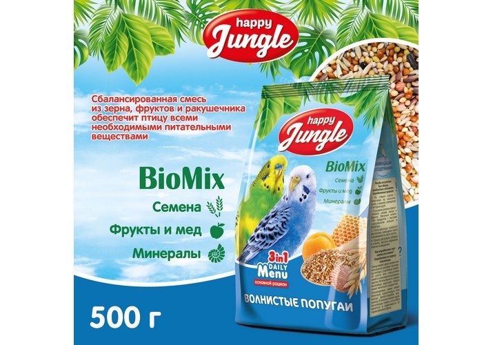 Happy Jungle 3in1 Daily Menu Корм Хеппи Джангл для Волнистых попугаев 500 г