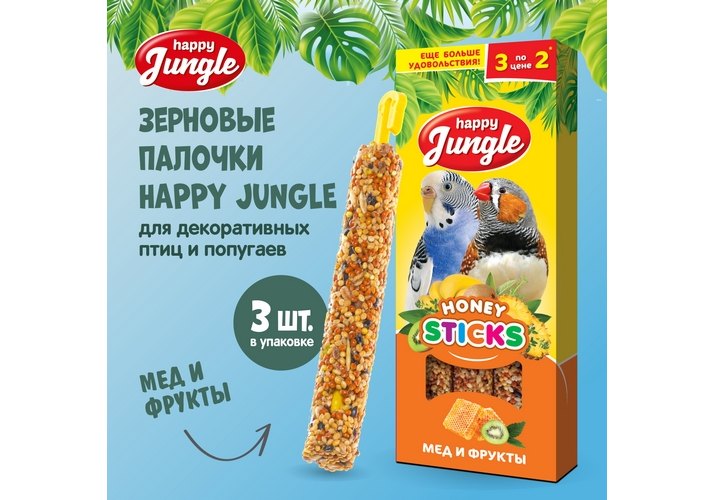 Happy Jungle Honey Sticks Лакомство Хеппи Джангл для птиц Палочки Мед + Фрукты 1 х 3шт