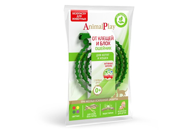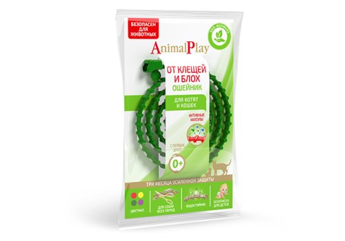 Animal Play Ошейник Энимал Плей для Котят и кошек репеллентный от Клещей и Блох Зеленый 38 см