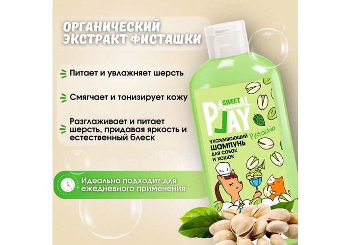 Animal Play Sweet Sweet Pistachio Шампунь Энимал Плей для собак и кошек Ухаживающий Фисташковый сорбет 300 мл