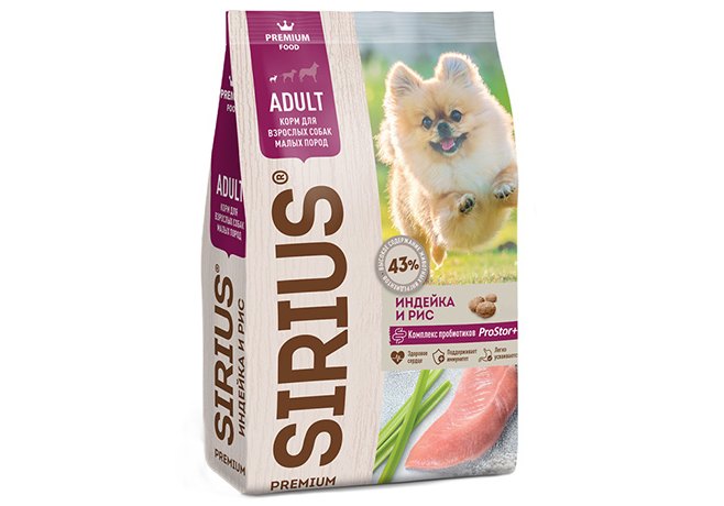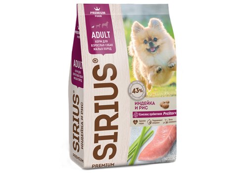 Sirius Сухой корм Сириус для взрослых собак Малых пород Индейка и рис 2 кг