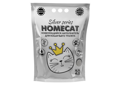 Homecat Silver series Комкующийся наполнитель Хоумкэт премиум для кошачьего туалета 20 л (5 кг)