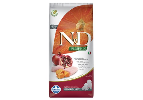 Farmina N&D Pumpkin Line Puppy Medium Maxi Chicken & Pomegranate Grain free Сухой Беззерновой корм Фармина для Щенков Средних и Крупных пород Курица с Гранатом и Тыквой 12 кг