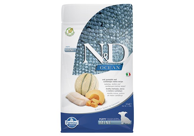 Farmina N&D Ocean Line Puppy Mini Cod Pumpkin&Cantaloupe Melon Grain free Сухой Беззерновой корм Фармина для Щенков Мелких пород Треска Тыква и Мускусная дыня 800 г