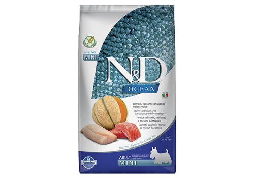 Farmina N&D Ocean Line Adult Mini Salmon Cod & Cantaloupe Melon Grain free Сухой Беззерновой корм Фармина для взрослых собак Мелких пород Лосось Треска и Муксусная дыня 2,5 кг