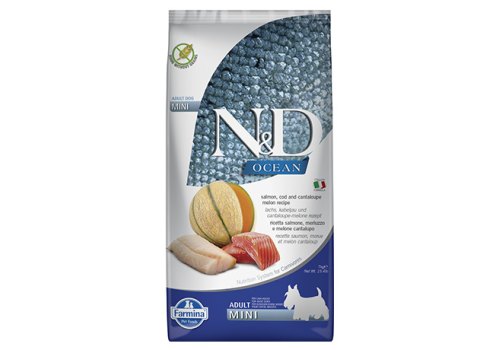Farmina N&D Ocean Line Adult Mini Salmon Cod & Cantaloupe Melon Grain free Сухой Беззерновой корм Фармина для взрослых собак Мелких пород Лосось Треска и Муксусная дыня 7 кг