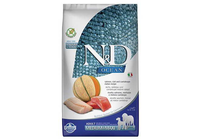 Farmina N&D Ocean Line Adult Medium Maxi Salmon Cod & Cantaloupe Melon Grain free Сухой Беззерновой корм Фармина для взрослых собак Средних и Крупных пород Лосось Треска и Муксусная дыня 2,5 кг