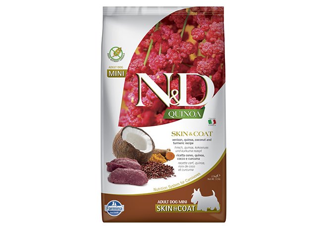 Farmina N&D Quinoa Line Skin & Coat Adult Mini Venison Grain free Сухой Беззерновой корм Фармина для взрослых собак Мелких пород Здоровье Кожи и Шерсти Оленина с Киноа 2,5 кг