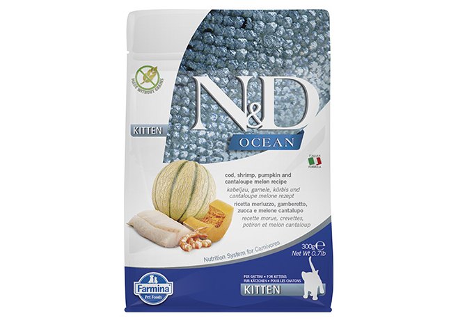 Farmina Kitten N&D Ocean Line Cod Shrimp Pumpkin & Cantaloupe Grain free Сухой Беззерновой корм Фармина для Котят Треска Креветка Тыква и Мускусная дыня 300 г