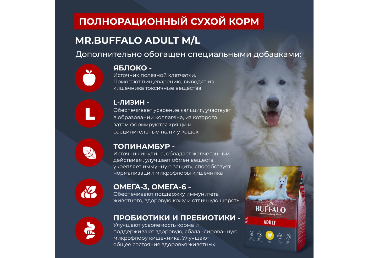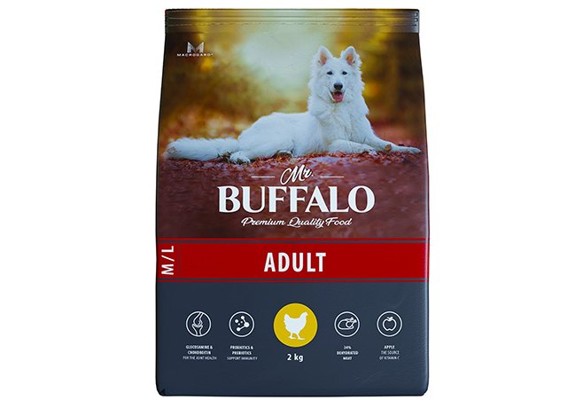 Mr.Buffalo Adult M L Сухой корм Мистер Бафало для собак Средних и Крупных пород Курица 2 кг