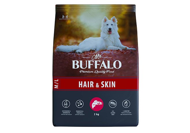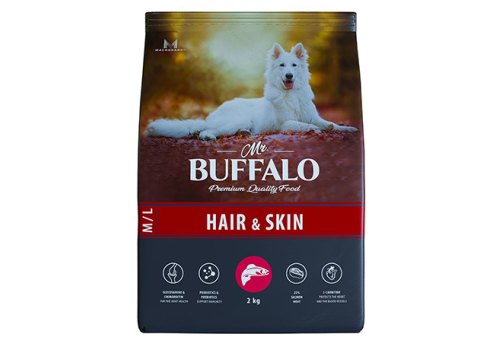 Mr.Buffalo Hair & Skin M L Сухой корм Мистер Бафало для собак Средних и Крупных пород для Шерсти и Кожи Лосось 2 кг