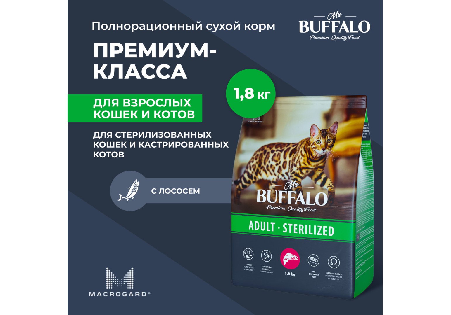 Mr.Buffalo Adult Sterilized Сухой корм Мистер Бафало для Стерилизованных кошек Лосось 1,8 кг