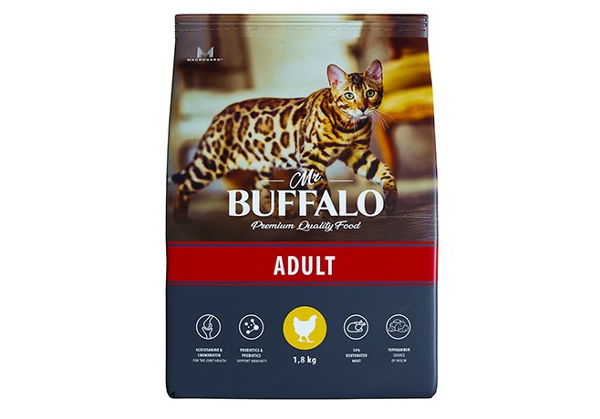 Mr.Buffalo специально разработан для удовлетворения энергетических потребностей взрослых кошек от 1 года. Изготовлен из высококачественных, легкопереваримых ингредиентов, имеет в составе высокий уровень антиоксидантов и витаминов.
