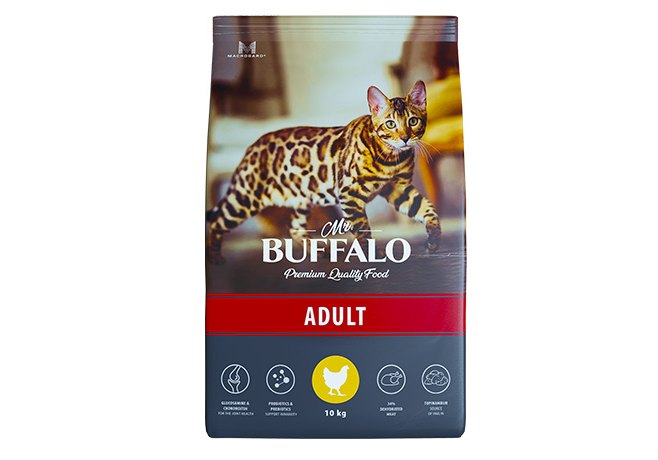 Mr.Buffalo специально разработан для удовлетворения энергетических потребностей взрослых кошек от 1 года. Изготовлен из высококачественных, легкопереваримых ингредиентов, имеет в составе высокий уровень антиоксидантов и витаминов.