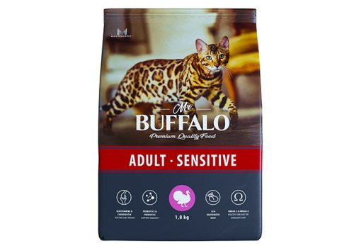 Mr.Buffalo Adult Sensitive Сухой корм Мистер Бафало для кошек с Чувствительным пищеварением Индейка 1,8 кг
