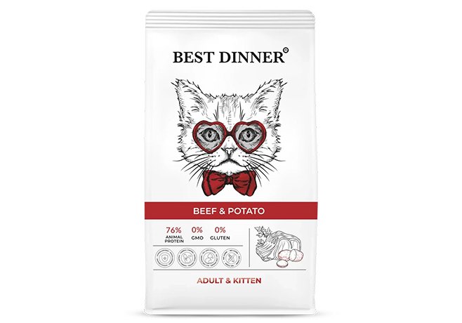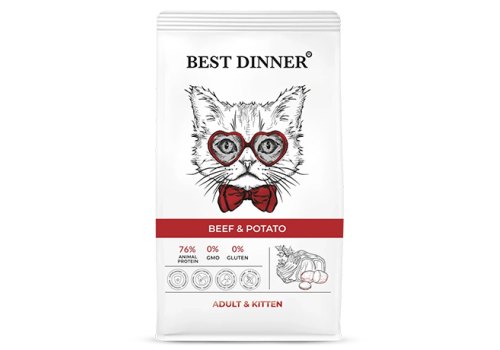 Best Dinner Adult & Kitten Beef & Potato Сухой корм Бест Диннер для Котят с 1 месяца и кошек Говядина картофель 10 кг