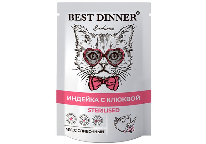 Best Dinner Exclusive Sterilised Паучи Бест Диннер для Стерилизованных кошек Мусс сливочный Индейка с клюквой (цена за упаковку) 85г х 24шт