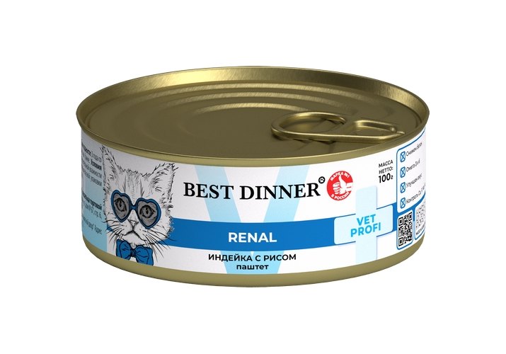 Best Dinner Exclusive Vet Profi Renal Консервы Бест Диннер для кошек Паштет Индейка (цена за упаковку) 100г х 12шт
