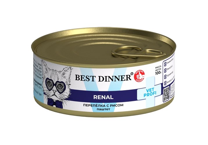 Best Dinner Exclusive Vet Profi Renal Консервы Бест Диннер для кошек Паштет Перепелка (цена за упаковку) 100г х 12шт