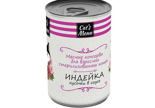 Консервы Cat's Menu с индейкой кусочки в соусе для стерелизованных кошек. Разнообразьте вкусное меню ваших любимых питомцев с помощью мясных, аппетитных кусочков индейки в соусе. Консервы имеют полностью натуральный состав и производятся из отборного российского мясного сырья, не содержат искусственных красителей, ароматизаторов и сои. Как известно после стерилизации у кошек происходит замедление обмена веществ, что приводит к набору веса при неправильном питании, следовательно, после процедуры стоит контролировать вес любимца. Корм для стерилизованных кошек менее калориен за счет уменьшения жира в составе, но, несмотря на сниженную калорийность, он содержит легко усваиваемые белки натурального мяса индейки. Сбалансированный состав корма с оптимальным соотношением белков, жиров и углеводов, а также наличие витаминно-минеральных добавок, позволяет сделать рацион животного максимально продуманным и полным, обеспечив при этом крепкое здоровье и высокий уровень активности четвероногому другу. СОСТАВ: фарш индейки (не менее 4%), фарш куриный и куриные субпродукты, мясо и мясные субпродукты, мясной бульон, злаки, таурин, витамины, минеральные вещества. ДОБАВКИ: Омега -3 жирные кислоты – 0,3%, омега -6 жирные кислоты – 2,6%, медь – 1,7 мг/кг, витамин А – не менее 150 МЕ, витамин Е – не менее 0,9 мг, таурин – 2000 мг/кг.