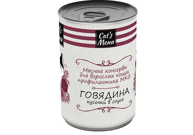 Консервы Cat's Menu с говядиной кусочки в соусе профилактика МКБ для кошек. Разнообразьте вкусное меню ваших любимых питомцев с помощью мясных, аппетитных кусочков говядины в соусе. Консервы имеют полностью натуральный состав и производятся из отборного российского мясного сырья, не содержат искусственных красителей, ароматизаторов и сои. Сбалансированный состав корма с оптимальным соотношением белков, жиров и углеводов, а также наличие витаминно минеральных добавок способствует поддержанию нормального функционирования мочевыводящих путей и обеспечивает оптимальный pH мочи, что снижает риск развития мочекаменной болезни. Корм дополнительно обогащен незаменимой для кошек аминокислотой – таурином, который улучшает выработку желчи, играет важную роль в функционировании сердечной мышцы, сохранении остроты зрения и здоровья глаз. СОСТАВ: мясо (говядина не менее 4%) и мясные субпродукты, фарш куриный и куриные субпродукты, мясной бульон, злаки, таурин, рыбий жир , витамины и минеральные вещества. ДОБАВКИ: витамин А – не менее 150 МЕ, Омега -3 жирные кислоты – 0,1%, Омега -6 жирные кислоты – 1,6%, незаменимые жирные кислоты – 2,61%, кальций - 0,3%,натрий -0,1%, витамин Е – 143 мг/кг, фосфор – 0,10 %, калий – 0,43%, таурин – 2000 мг/кг.