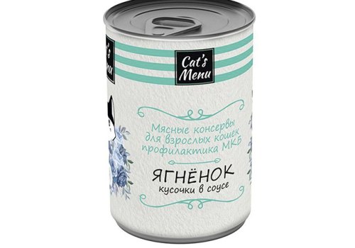 Консервы Cat's Menu с ягненком кусочки в соусе профилактика МКБ для кошек. Разнообразьте вкусное меню ваших любимых питомцев с помощью мясных, аппетитных кусочков ягненка в соусе. Мясо ягнёнка является источником ценного белка и легко усваивается, подойдет для кошек с чувствительным пищеварением. Консервы имеют полностью натуральный состав и производятся из отборного российского мясного сырья, не содержат искусственных красителей, ароматизаторов и сои. Сбалансированный состав корма с оптимальным соотношением белков, жиров и углеводов, а также наличие витаминно-минеральных добавок способствует поддержанию нормального функционирования мочевыводящих путей и обеспечивает оптимальный pH мочи, что снижает риск развития мочекаменной болезни. Корм дополнительно обогащен незаменимой для кошек аминокислотой – таурином, который улучшает выработку желчи, играет важную роль в функционировании сердечной мышцы, сохранении остроты зрения и здоровья глаз. СОСТАВ: мясо (ягнёнок не менее 4%) и мясные субпродукты, фарш куриный и куриные субпродукты, мясной бульон, злаки, таурин, рыбий жир, витамины и минеральные вещества. ДОБАВКИ: витамин А – не менее 150 МЕ, Омега -3 жирные кислоты – 0,1%, Омега -6 жирные кислоты – 1,6%, незаменимые жирные кислоты – 2,61%, кальций - 0,3%, натрий -0,1%, витамин Е – 143 мг/кг, фосфор – 0,10 %, калий – 0,43%, таурин – 2000 мг/кг.