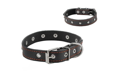 Homepet Ошейник Хоумпет для собак Кожаный с Украшениями Двойной простроченный Двухслойный Черный 15 мм/28-38 см