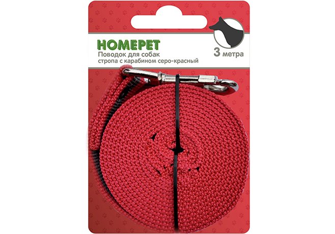 Homepet Поводок Хоумпет для собак Стропа с карабином 25 мм х 3 м Серо-Красный
